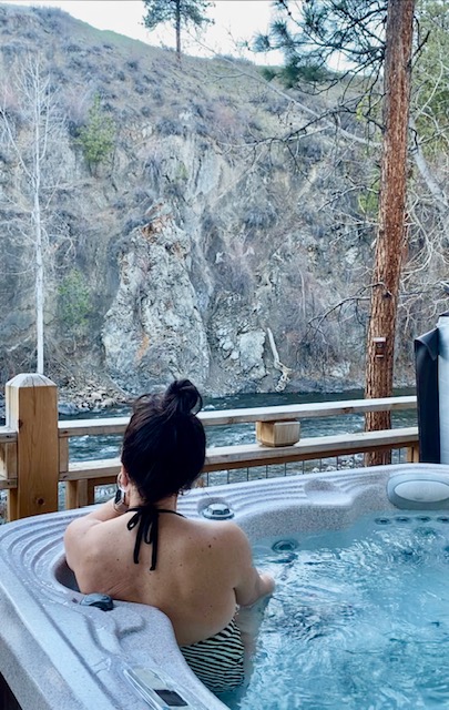 Our riverside cabins in downtown Winthrop, Washington are located along the Chewuch River and feature private deck hot tubs.